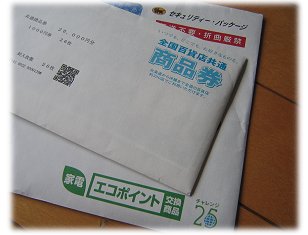 ようやくエコポイントの全国百貨店共通商品券が届きました!!6月初めにアナログTVからプラズマTVに買い替えした際に申請したエコポイント、申請と同時に交換申し込みをしていた全国百貨店共通商品券(26,000円分也)がようやく届きました。最初、何に交換しようかなぁといろいろ考えました。スーパーや大手家電販売店の商品券にしょうかとも思ったりしましたが、結局、一番汎用的に使えそうかなと思い百貨店の商品券に決めました。いろいろなものに交換できるエコポイントですが、交換する商品によって交換レートも異なるので若干の損得が出るようです。ちなみに私が交換した全国百貨店共通商品券は、等価交換なのでエコポイントが5,000点なら5,000円分の商品券となります。つまり損得なし!私は、6月20日頃に申請書を郵送しましたが、その後、音沙汰なしでようやく7月13日に「申請書が受理され家電エコポイントが発行されました。」というメールが届きました。そのメールには、「商品発送は申請時から原則1~2ヶ月はかかります。」ということが書かれていたので、気長に待っていたところ、7月23日に商品券が自宅に届きました。確かに申請から1ヶ月ほどでしたね。実際のエコポイントの申請については、こちらのページが写真付の丁寧な解説で参考になりました Joshin webのエコポイント解説のページになります。商品券は、当面使う予定は特にありませんが、腐るものではないので(^^ゞ しばらくタンスにしまっておこうかなぁ。ささやかなお楽しみとして・・・。 今売れているのはコレ!液晶テレビの人気ランキング 1位~30位 今売れているのはコレ!プラズマテレビの人気ランキング 1位~30位
