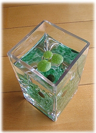 なかなかマリモのグラスに合っていると思いますが、どうでしょうかぁ?お部屋の 癒し系!?インテリア としてもGoodと思うのですが。。。マリモや浮き草なら手間いらずですしね(^^ゞ
