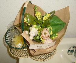 最近ずっと何か作りたい欲求が増していた。。。それはとっても周りに影響されているだって 見せてもらってるブログのママさんも育児の合間にいろいろ手作りしてるし 旦那様の転勤で海外に行っている従妹が 最近お花屋さんで働きながらフラワーアレンジメントを勉強して大きな夢をもって頑張っている話を聞いて もーっ!私も何かやりたいぞお!!っと 実に単純ではあるが 重たいお尻に火がついた?のである(年に何回かあるねこういうこと)ちょうど広告で フェリシモの手作りキットが月1通販で買えることが分かって さっそく購入!造花だけどフラワーアレンジメントのこつが分かるコースと何が届くかお楽しみのセット従妹の話を聞いていて 家の中を見渡したところ うちには花が全くないなーと思ったので。。。これは所要時間1時間!でできる簡単なものだったけど花の色合わせとか 包装紙の包み方など 思った以上に勉強になる!造花なのもすぐ枯らしてしまう私向き!いやー作品作りってやっぱり楽しいな今はテーブルセンターに置けるような刺繍入りのマットを母の誕生日用に作成中来月も楽しみだー