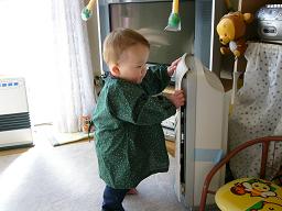 かなぶんばあちゃんの作品の一つですこれはスモックで ご飯食べるときも遊ぶときもセーターの上でも どんなに汚しても気にならない!案外こういう 薄手のスモックって売ってないですよねー洋服にしみがつかないし 濡れても大丈夫だしほんと便利後ろ姿はさながらちいさいおばあちゃん!?今かなぶんは家中をアスレチックにしてつ伝い歩きの毎日です新しいものにつかまれたときには満面の笑みでママに自慢しますこれは空気清浄機につかまってるところ