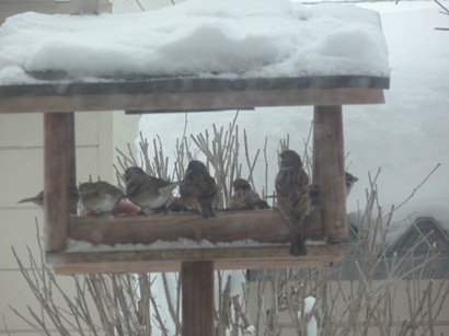 静かな月曜日です。快晴で道路もアスファルトが出て車は走りやすいです。道の両側は雪山が回廊みたいです。排雪が追いつかず、生活道路はでこぼこみちです。住宅地から車が出る時はたいへんです。 雀:最初2羽だったのに、太って元気に飛んできた。大寒を過ぎてきょうはプラス気温です。庭にはつがいのひよどりが来ています。りんごよりみかんがお気に入りのようです。どこでこの味を知っていたのでしょうか。空には沢山の鳥が飛んでいました。きれんじゃくかも知れません。今年は沢山の雀は来てかつての我が家の日常を見る思いです。ニュースになっている鳥インフルエンザもきがかりです。 木彫りのケース:アイヌ刺繍でやっと作る。