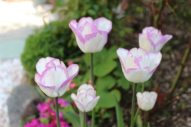 花の季節が来たのに体がもう一息。気温が上がって来たので花壇の手入れをしてひと息。庭で手入れをしていると、花友さんが急に立ち寄ってくれた。嬉しかった。具合が良好という訳でないのに、訪ねてくれた気持ち。この時間が大切。長い友情に感謝で。 千島桜: 近所の花友さん宅、今年はハッとする美しさ。家屋の基礎まで来てる勢い。 1週間前の桜。今は風に吹かれ、桜のじゅうたんへ。 外猫が居心地いいのかひなたと日陰に居座っている。鼠の穴をふさいだなら、気に入らないよう。飼えないから、飼える人に会えますようにと祈り。庭の花に癒されてる昼下がりです。 19度7分の空: 新緑の好きな頃。今年もひとり静かが元気に。 昨日のお墓参りも気持ち良い日でした。連休のお墓参りが多かったのか、霊園もお花畑のようでした。知人のお墓が直ぐ後ろにあって、供花を見て和んで来ました。知人も我が家のお墓を気にしてくれてるようです。