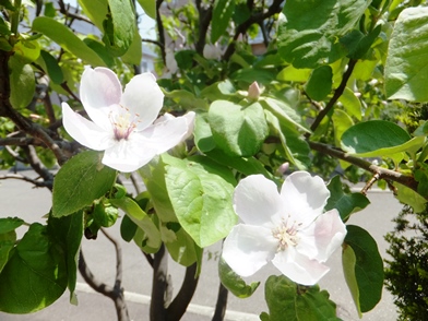 5月の中くらいまで朝晩ストーブだったのにカレンダー通りに爽やかな日和にいます。インドでは50度? 死者は路上暮らしの人達に出てると。納骨途中経過のコピー書類を義兄弟に送り届けました。やっと、半分進むことが出来ました。長い冬を越えて、納骨の気分へと進むことが出来ました。 利休さんの「大丈夫、心配するな、何とかなる」を思い出しています。亡き父が年賀状に書いてあった言葉が利休さんだったことを兄と懐かしくなって、電話で話して見ました。父が利休さんを好きだったかは。生き方が少し似ていたような。 マルメロと山オダマキ: 昨年は大風と雨で痛められたマルメロ。オダマキはお客さま、 植えた覚えがないです。 ダメ元で追加出演の公演のチケットを買いに出かけゲット出来ました。日常に輝きを期待して、自分達ご褒美です。猫の治療介護で遠出が無理になったので、違った形で、気分転換にもなれば幸いです。 夜は弱いので、今、洗髪終えました。自分で出来るって事、感謝です。弟からも感謝いっぱいの手紙が届きました。