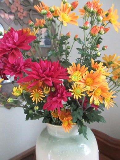 10月に入り台風と豪雨のニュース本州に住んでいる友人、身内を気になりながら町内会の外の係がお蔭様であと1回になりました。友人の4人が癌告知と向き合っています。重いテーマです。少しでも支えられたならと思うのはよーく考えると不遜で。一人ひとりが解決能力あると気が付き私に出来ることはお話聞くこと今年の秋の収穫を届けることだけです。我が家の小さな庭を広く錯視させて花と実のなる経済的貢献へやっと目指していた秋になって来ています。色々あっても癒してくれた小さき庭の空間に感謝しています。夫からのギフトです。ありがとうです。喜びが伝わっていますか。今年は種類がふえました。マルメロジャムコクワ紫蘇紫蘇の実カシスカリンズカサブランカ菊の花草花バラ達が知人さん達へ受けて頂きました。可愛い子供達の巣立ちみたいでした。そして形を変えて我が家に戻って来ました。手作りを楽しむ知人さん達のギフトも嬉しい秋です。寂しくなる晩秋を彩ってくれそうです。