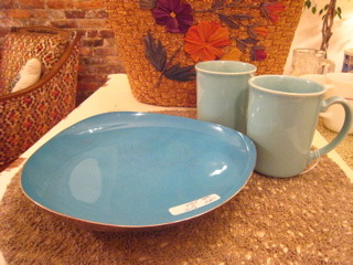 いよいよ、長かった旅の日記も最後になりました。最終日に行った、アンティークモールにて…………ここ、車で走ってる時にたまたま見つけたんですが、大通りに面してないのでよく見つけたなあって感じなんです!ここはね~~、日記にも書きましたが、もっと時間が欲しかった!!とにかく商品多過ぎです………時間を下さい(笑)そんな限られた時間の中で、厳選した物達です。シルバーに、鮮やかなブルーのエナメルがトップに施されたお皿と、またまたコーニング社のマグカップ。このマグカップ、不思議な事にmade in Japan になってるんですよ~。その昔、コーニングは日本でも生産されていたってことなのかしら???ミルクグラス以外にも、こんな可愛い色のマグを作っていたんですね~♪ブルーのお皿の底は、こんな感じにシルバーのままで足までついています。クラフトの、その昔、チーズが入っていた箱です。アールデコ調の小さな花瓶と、ミルクグラス(ベージュっぽい色)のお皿に、大きな黄緑のお皿。今回の買い物、何だか色の調和が取れてると思いません?いいなあと思うものを買ったら、自然と、ブルー&グリーン系の色でまとまりました♪今回の沢山の戦利品達、楽しんでもらえましたか?また行きたいな、アンティーキングの旅。今度はいつになるのかなあ……………