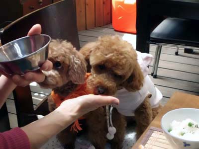 今日は、はあまり顔を見せず空・・・蒸し暑かったですね。 ふら里では、 虫除けと涼を兼ね入口に網戸を付けました。この工事、実はウチのシェフのお手製です^^ なかなかやるでしょ あったかを通り越して蒸し暑い今日このごろわんちゃんで大盛況のふら里ですこのコたちは、ドイツのワンちゃんでレオンベルガーって種類だそうです とにかく でかい子牛ほどの大きさで体重はなんと60Kgだって!ねんねしてるのがお母さんでお名前は(姫ちゃん)おすわりしているのは子供のピンクちゃん(親子)なんですって こちらは、何度かご来店の かわいこちゃんで~す^^ そうそう お待ちかねの じゃが を収穫しました。上の黄色いのがインカのめざめ赤いほうがインカのひとみ です。今年は、冷害で あまり採れませんでした>< さっそく、試食しましたよ^^ 何といってもコレだね^^じゃがバター ほこほこで おいしい~~~ あかちゃんいもで こんなのもつくってみましたじゃが雑炊 うんうん イケるやん^^ 数が限られていますので、お早めにね