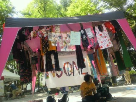今年もとにかく楽しかったピースフェス。会場にいる人たちがみんな笑顔になっちゃう日!今年はうちは家族4人での参加。テントも4人で広げるとあっという間!!ある程度準備が済んだ開始前の午前10時前、ピースフェス恒例の出店者の朝礼。そしたらもうビールを飲んでいい時間なのです(笑)暑いのでバカみたいにビールが進み午前中からヤバイ!連れ合いはピースフェス初めてでしたが、お香やセージの香り漂う、出店者も見るからにピースな空間を楽しんでおりました息子たちはすぐにいなくなり、公園を走り回ったり、ラムネや焼きそばをつまみながら紙風船やシャボン玉やったり、お友達のみーちゃんに駄菓子屋に連れてってもらったり、流しそうめん食べたり↓「時代に流されるな! 流しそうめん」いや~。この感じ好きだなぁ中井には染物やさんが多く、毎年「染の小道」というイベントも開かれているそうで、ピースフェス会場では100人染めや藍染体験もあったり、浴衣のワンコイン着付け&安価な古着浴衣の斡旋もあったりして。普段着で来ても浴衣で帰れちゃうなんて画期的~午後はステージで浴衣コンテストもあってみんなかわいかった!わたしもいろいろやりたかったけど自分が出店してるとなかなか他のお店の体験ができなくて…それだけがネック。でも飲食は楽しんじゃったもんね~Cafe Rappaさんのファラフェルピタサンド。もちろんおいしかった!上京した時は外食が多く野菜不足になりがちなので、野菜たっぷりで感激☆「以前は店舗はなくて移動販売だけってことだったのに、とうとう店舗かまえたんだね~!」なんていい話を並びながら聞いて、密かに感動ー楽しみなステージは11時頃から17時の終了前まで大所帯バンドから弾き語り、高尾山の自然を守る活動をしている[虔十の会]のトーク、そして仲良くしているSister☆Sisterのステージも!最後のGive Peace A Chanceはみんなで歌おう!ということで今年も一緒に歌っちゃった♪無理やりステージにひっぱった下の息子が神妙な顔で歌詞をつぶやいてたのが印象的(笑)夜は今年でなんと45回!の「落合平和盆踊り」があるということで、昼間の部のピースフェスは16時過ぎには撤収。その後はSister☆Sisterの打ち上げに合流しましたとさ。ビールも落ち着いた午後、mariさんが冷たい麦茶と氷を持って遊びに来てくれました早速みんなでいただいて一息~。ありがとう☆mariさんとは10月のおたのしみdayのことで打ち合わせができてよかった。おたのしみdayと言えばkakapoせっけんのなおちゃんもピースフェス出店してて連れ合いとわたしもしょっちゅうおしゃべりしてましたなおちゃんとは奏での森で知り合ったので、連れ合いも知り合いなんだ。なおちゃんはすごく企業努力されてて毎回新製品が出ていてびっくりするんだけど、なんと今回は!泡ボトル。しかも換気扇の汚れが一瞬できれいになっちゃう、ほんとだよ~衝撃の動画はこちらのブログから→→→http://kakapo3.blog.fc2.com/blog-category-1.htmlお試しボトルをいただいたので、同じくらい汚れてるうちの換気扇でもやってみますこんな風にどこかのイベントで知り合った人と別のイベントで会ったり、連絡取り合うようになって友達になったり、すばらしいこと。よくメールやコメントなどで「いつかハルさんにお会いしたいです」とか「一度タイパンツも履いてみたいです」ってメッセージをいただくけれど、やっぱり実際に会いに来てくれる人が大切だなって思うし、タイパンツどれもかわいい~!!って思いを直接いっぱいいただくと、あったかくてやさしい気持ちで胸がいっぱいにぎゅーってなって、これからももっとがんばっていっぱい作りたいって思える。だから今年のピースフェスも楽しくて幸せでしたありがとう☆次回の東京出店は 10月26日(金)おたのしみday です。タイパンツ販売です 10時半~16時半 :杉並区another~kitchen今週2日は長野県安曇野市三郷の あぐる ふるさとまつり に出店します