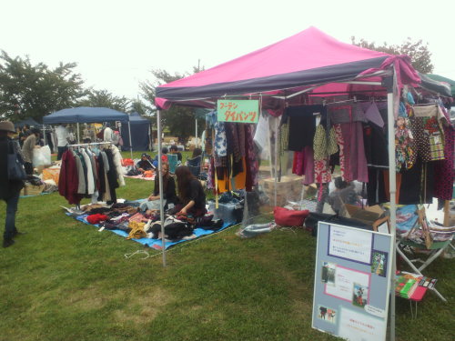 今日は降水確率60%でしたが、雨は降ることなくくもり空で快適に過ごせた素敵なアースデイになりました。主催のフリマネット信州のみなさん、いつも素敵な場を整えてくださりありがとうございます。今回も気持ちよく出店することができました、感謝☆今回のアースデイはいつものアルウィン南側ではなく、東側の広場。雨を心配してか出店もお客さんも少なめに感じましたが、わたしは今日の雰囲気はすごい好きでしたね。NO ONEの出店はこんな感じ。細かい区画割だったので2面使えるはじっこに出店できました。今回は家族に用事があって一人出店だし、駐車場から遠そうだったので搬入が楽になるようにと、今回一番時間をかけて考えたのがレイアウトでした。テントにただ吊るすだけでは商品が見えにくいかな…と以前から思っていて、今回はこんな道具を使ってみました。この棒をテントに引っ掛けて端っこをひもでくくって、ここにハンガーをかけました。この棒って…そう、この野菜とか花に使うワイヤーです。20着くらいなら、しなることもなくこれで十分。タイパンツの本数が多い時は長いワイヤーをつなげばOK。物干しざおや竹を使ってる人も多いですが、わたしはこれでいいかな。今日のアースデイはね、はじめましての方とたくさんお話しできて楽しかったです。タイパンツかわいいー♪全部作ってるんだねすごーい♪どれも素敵素敵♪お褒めの言葉をいっぱいいただきました。リメイク講座やキッチンDEソーイングに興味を持ってくださった方も。ご都合合うようだったらぜひいらしてくださいね。お待ちしています!!会いたかったり、どうしてるかなって気になっていた出店仲間達にも会えました。ちょっと挨拶するだけだったり、遠くから見るだけだったりでしたが、みんなそれぞれ活動している様子や、今ちょっとお休みしてるんだよって様子など、きっとちょっとずつ変わっているんだろうけど、やっぱり根っこは変わらないよなってなんか安心しました。わたしにとって何年も同じ場所で出店するということは、そこでしか会えない人と「ああまた会えたね、お互いやってるね」ってことを、確認しあう日なんだと、改めて確認しました。出店するたびに知り合いが増えて、より自分らしくいられる場所になってゆく、わたしにとっての出店ってそんな意味があるような気がします。長野県内の出店は、今日で本年最後になると思います。タイパンツに会いに来てくれたみなさま、ありがとうございました!!冬場も機会を見つけて出店してゆきたいと思っていますので、どうぞよろしくお願いします!!