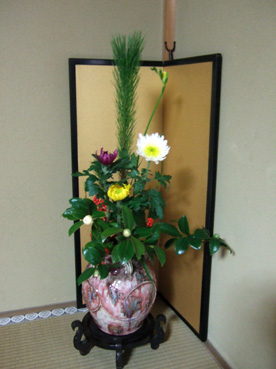 古川町商店街の花屋さんで相方が選んで活けた正月飾り