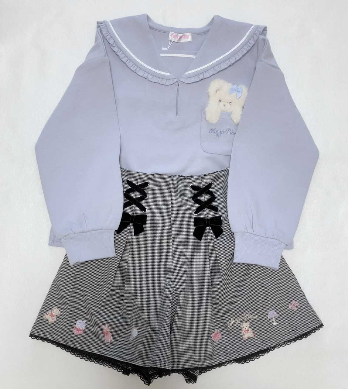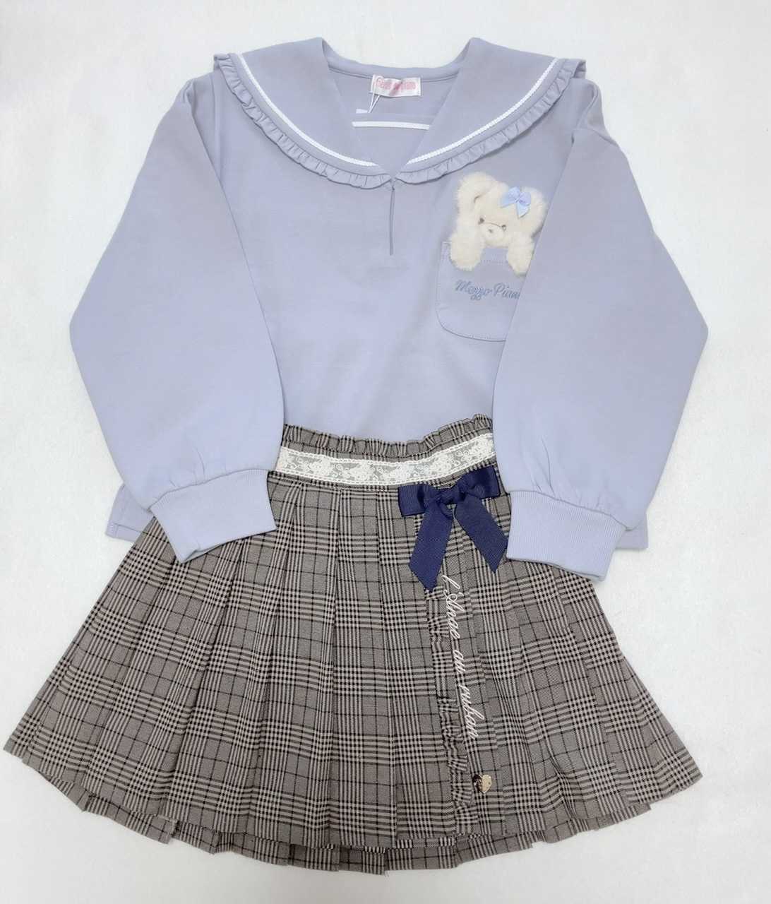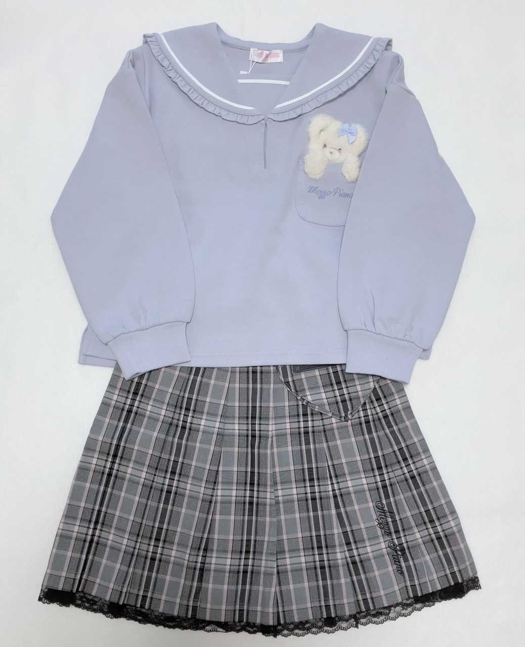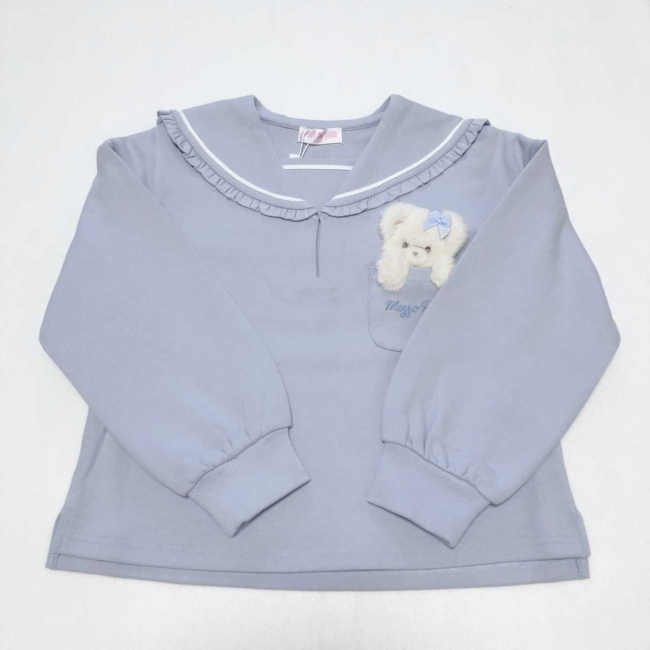 ☆メゾピアノ クマポケット セーラーカラー長袖Tシャツ(サックス)