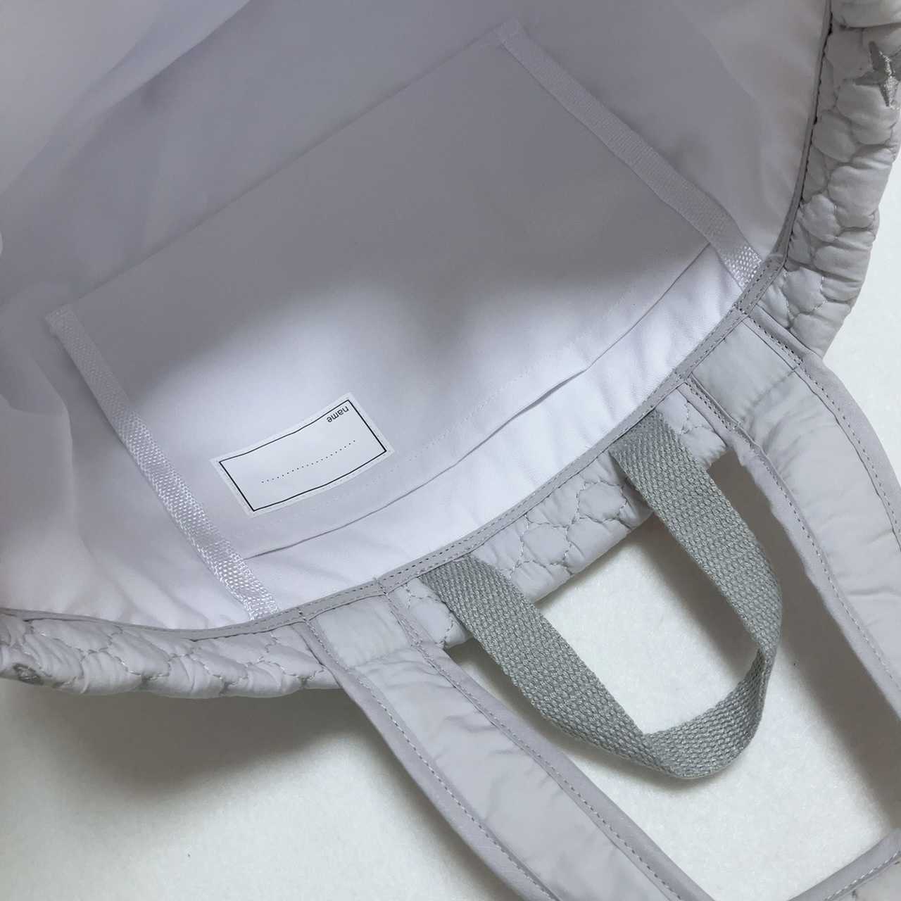 中にポケットとお名前を書く部分も付いています。