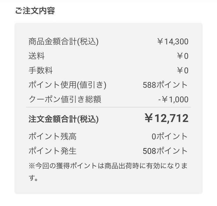 先日来ていた1000円OFFクーポンと、バースデーポイント500pt&残っていたポイント利用しました♪