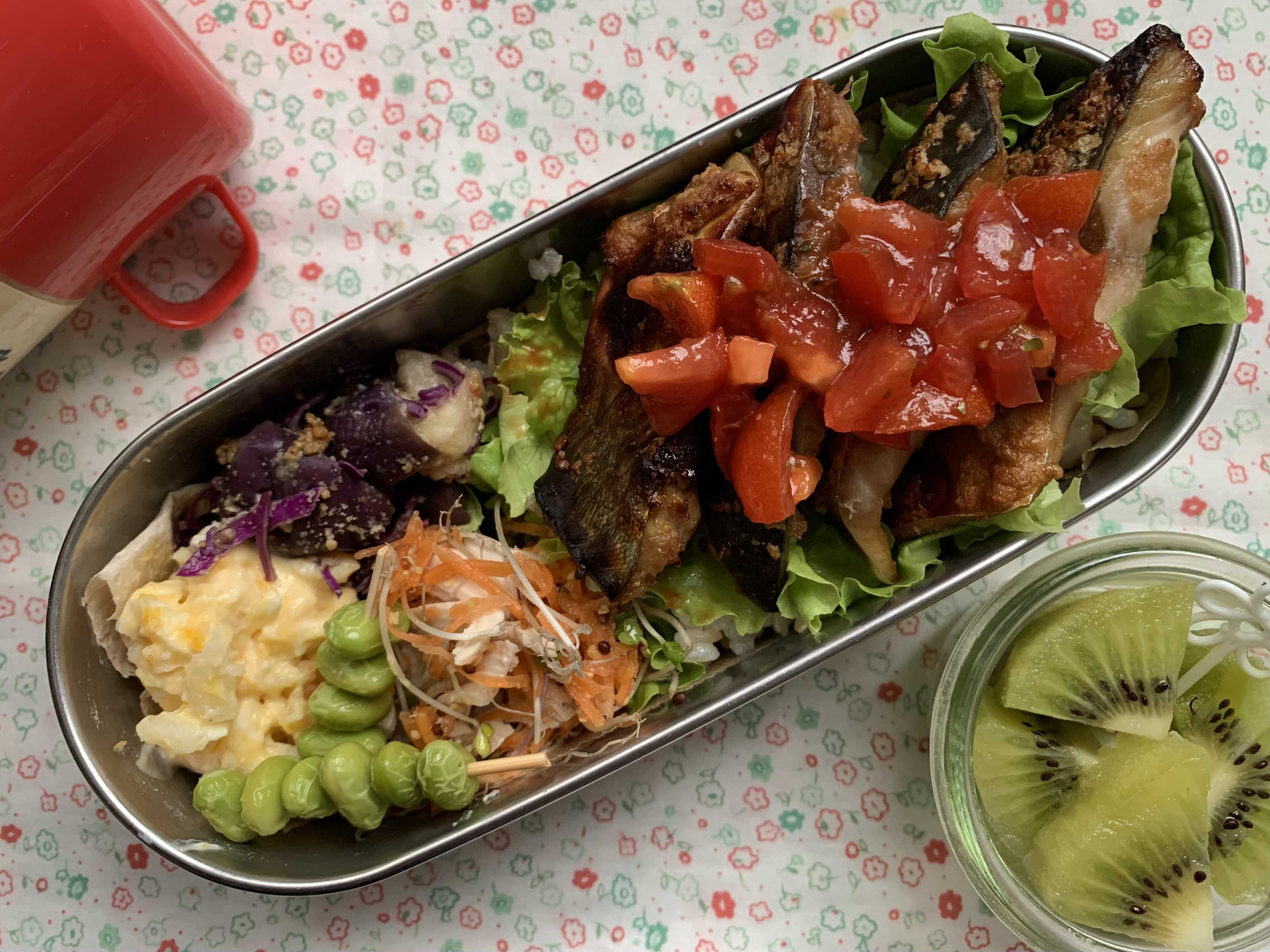 お昼前からは晴れて青空で明るかったけれど、空気はきりっと寒くなって来た日。 今日のお弁当は・・・トマトソースのせ焼きサバ、ササミのサラダ、ナスと紫キャベツの胡麻よごし、塩茹で枝豆、ポテたまとおまけのキウイ。焼きサバは、一口大にカットして、醤油とみりん、酒にしばらく漬けておき、軽くパン粉をふったサバを魚焼きグリルでこんがり焼きました。プチトマト+ケチャップ+ハーブソルトで作ったかんたんトマトソースをかけたら出来上がり♪←いつも見ていただいてありがとうございます。ブログ村のランキングに参加しています。四毒抜きのすすめ 小麦・植物油・乳製品・甘いものが体を壊す [ 吉野敏明 ]←こちらの本を熟読中。病気の原因は食事であることが多いという内容! YouTubeもとても興味深く、病気の原因、医療、政治などなど、凄く博識で勉強になります。毎日、配信!なので、毎日、楽しみ♪2019年度産新米 有機米・熊本コシヒカリ 玄米(5kg)【ムソー】