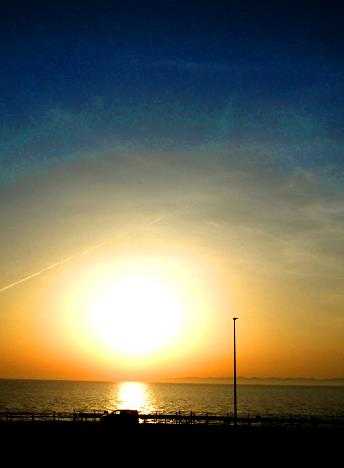 久しぶりに晴れた 穏やかな春の海岸 夕日