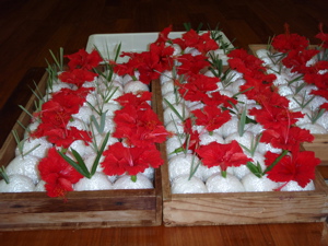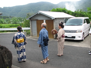 雨の中やっと豊年祭が終わりました^0^朝4時から力飯作り全部で400個作りました^0^豊年祭だから収穫物のお供え両端に結んであるのはサトウキビ備えてあるのはシブリ(冬瓜)と島カボチャ、お米ヨッソーで余興部の入場ママは白と紺の浴衣姿です^0^最初は奉納相撲相撲って神事なんですよねこの島は各集落、学校ごとに土俵が設置されてますこの1年間で生まれた男の子の土俵入り雨の中でも泣かずに土俵入り出来ました♪雨の中のハッピ踊り焼酎音頭を踊りました♪あと浴衣で舞台発表保育園生、小学生、青年団、熟年会の出し物多々打ち上げも終わり先ほど帰って来ました明日からは台風対策しなくっちゃ明日にはゆっくりご訪問出来ると思いますたくさんコメントいただいているのにお返事、ご訪問が遅れていてごめんなさい…ペコリ今日はさすがに疲れたのお休みします zzz~