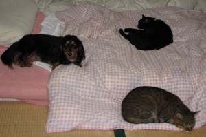 最近夜になると雷を伴った豪雨が~雷嫌いな子はみんなママのお布団の上に集合中微妙な距離を保っているでしょう(笑)雷一番嫌いな翼が何処にいるかと言うと…もちろんママのお膝の上でした^0^いろいろな種類のカボチャをたくさん頂きました~この倍あるの…どうやってお料理しようかしら~奥にあるのはシブリ=冬瓜美味しいレシピがあったら教えて下さい