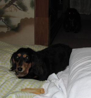 夕べも踊りの練習に行っていて帰って来たのが10時頃一杯運動するとお腹もすいちゃってついついパパとお酒飲みながらおつまみを食べていたら一周の好きをぬってかっさらって行った子が…2枚とも私が銜えて来たんだものね♪あまりにも瞬間の出来事だったのであっけにとられている子が一人(暗闇の中で目が光っているでしょう:笑)私が食べる権利があるのよ byソラミと言わんばかりに両方齧っていると後ろから切ない声が…何だか翼の姿が物の怪に見えてしまいました…もっとお手入れしなくっちゃウコンの花明日はいよいよ豊年祭敬老会も兼ねているので今日は近所の敬老者のお宅を訪問してご招待してきます夜は最後の練習と明日の準備明日は早朝4時から力飯作りです後一踏ん張り、頑張りましょう^0^そんなわけでお返事ご訪問が遅れていますごめんなさい ペコリ