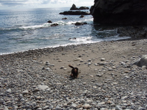 ホノホシ海岸昨日翼達が遊んでいて反対側には玉石が広がる海がありますその横には潮が引いた時だけ通れる抜け道も♪そこに勝手に入って行ったお嬢さんは…ワオ~ン、登れないわ!誰か助けて! byソラミとプチパニックバカだね~下から向こう側に行ったの忘れているのこんなに簡単に通れるのにね by翼と泣き叫ぶソラミを尻目に悠然とボールを取って来た翼です^0^イソノギク:絶滅危惧種昨日の猫ちゃんはどうなったかな今日はママも仕事だから小学生達に会えないのよね…デーラちゃんの幸せを祈るばかりです