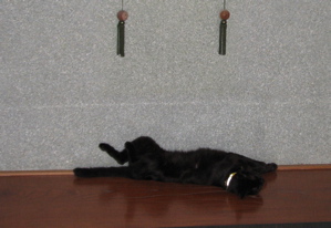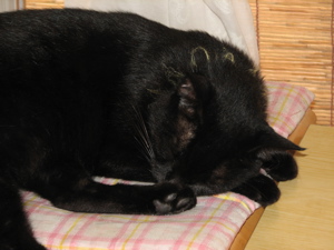 おかげ様で台風はほんの少しかすっただけで通り過ぎて行きました^0^ココは雨が強く降ったくらい南九州の方がきつかったんじゃあないかしら~ご心配ありがございました ペコリさて、ミャア助が凛々しく門番をしている頃黒猫ネンネが何をしていたかと言うと…私は床の間の飾りになっているのよ♪巨匠の絵に描かれている裸婦みたいでしょう(わけないですよね~爆) byネンネクミクスチンの花ご訪問、お返事が遅れていますごめんなさい ペコリ
