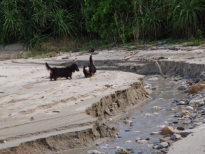 今日は明後日、旧暦9月9日の権現祭の為の林道整備がありました権現様は集落を見渡せる小高い山に祀られているのでそこに行くまでの林道整備ですもっともメインは男性が草刈り機や鎌で行うんですけどね皆で行うので1時間あまりで作業は終了しました♪おまけに今日はとってもよいお天気なのでそのままワンズを連れて海に…昨日の雨で何時もはない川が出現冷たくて気持ちがいいので水大好きなワンズの絶好の遊び場とかしました^0^わざわざ川の中を歩いて追いかけっこ♪すぐそこは海もちろん帰ってからはお風呂場直行^0^今日はお天気がよかったのでついでにニャンズもお洗濯黒猫ネンネはいい子で入れるのですが…お風呂大嫌いなミャア助は虐待されているのか~!って思うほど泣き叫んでました(苦笑)そのあとママのお腹の上でお昼寝してご機嫌直りましたけど(笑)お天気ついでに車も洗ってママもゆっくりお昼寝しちゃいましたこれからゆっくり皆様のところにお伺いしますね♪クロヨナ(海岸林を構成する常緑高木)の花