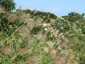 昨日は午後からワンズを連れてドライブに行ってきました行き先はこの島で一番高い山:湯湾岳標高約700メートルの山の山頂は秋の気配ススキが満開でした♪吹き抜ける風も高原にいるような爽やかな風♪♪すすきの向こうに咲いているのはサキシマフヨウの花奄美に秋を次げる花です吹く風も爽やかで川の水も結構冷たかったので今日は川遊びをさせるつもりはなかったのに…川を見つけた途端に飛び込んで行ったお嬢さん(苦笑)翼もしっかり後を追って瞬く冷たい水の中で遊んでました^0^楽しそうでしょう~川の水は冷たくても日だまりはまだまだ暑いのであっと言う間に乾いてしまい帰り道は2ワンとも居眠りしながら帰って来ました^0^秋を見つけるには山の上に登らないと行けない南の島ですさて、今日の午前中はヤスデ退治今年はものすごく数が多くって何処から入ってくるのか家の中にまで入ってくる状態ワンニャンいるから劇薬は使いたくないし…何かいい方法がないかしら~ヤスデの映像=虫が嫌いな人は見ないでね(ママも苦手なので退治はパパ任せです) ↓日に日に集まる数が増えて行っているのよね…^へ^