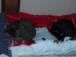 今日はワンニャンのそばにいたいのでパパに代わりにアップして貰います(下書きはママがしたもの)ソラミの避妊手術は無事に終わりました懸念していたしこりは脂肪の塊でした、ほっ^0^でも、傷口が痛いみたいであのヤチャ姫が水しか飲まないで大人しく寝ていますただ翼の状態は限りなくクッシング症候群の疑いが濃厚で…検査結果待ちです2年前に疑ったときには前立腺肥大で虚勢後調子はよかったのですが、今年の春ごろからママもあのお腹の出具合がただのメタボではないんじゃあないかと疑っていたので…覚悟しなければいけないのかなと思っていますミャアは今のところ変わらずおばあちゃんには慣れましたがおじいちゃんが来ると逃げています(苦笑)今は食べられるものを食べさせて少しでも元気でいさせてあげようと思っています信頼している病院ではあるけれど、誤診はありますものそれを願って☆☆願って☆ネンネはここに来てから甘えん坊さんに変身ずーっとそばを離れないし、おしゃべりばかりしています^0^