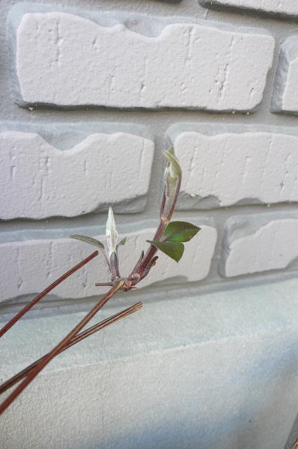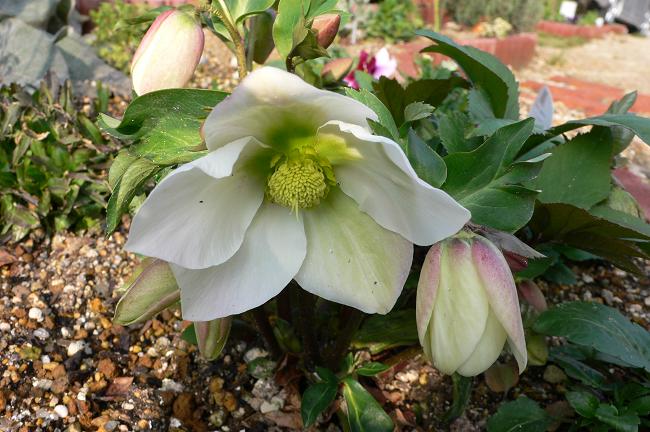 皆様、1ヶ月ぶりの更新になってしまいましたっご無沙汰しておりますスーパーで働いているので(お菓子担当です)お休みが決まっておらずなかなかゆっくりガーデニングに浸ることができませんしかもお菓子担当故にイベントの多い時期の入社はかなりキツかったです節分、バレンタイン、桃の節句、ホワイトデー・・・と、商品の入れ替えが激しく私のキャパを超えてしまってました何とか落ち着いてきたかなぁ・・・と思ったら棚卸しがあったりで日々サービス残業に勤しんでます今日はお休みだったけど、家庭学級の閉校式&調理実習があったので朝から公民館でゴソゴソとしておりました。家に帰ってようやくお庭をぐるりと廻ることが出来た・・・と言った感じですしばらくほったらかしにしていた間に色々変化があったようで嬉しい限りです。クレマチス・マダムバロンバイラードですもう1つの雪小町の方にも新芽が確認出来ましたハッキリ言って・・・水もあまりあげてなくて完全に枯れたと思っていたのですが枯れていなかったのね~嬉しい今年も少しずつでいいので綺麗に咲いてくれると良いな玄関前のわずかなスペースに余った苗を植え込みましたこの縁にはヘデラや初雪カズラがワサワサとしげってます。少し・・・整理しなくちゃいけないかなぁ。ヒヤシンスも色づいてきました。何色が咲くのかな~冬越しのペチュニアにも新芽が出てきました。ドレスアップネオですが、ブラッシュの方にはまだ新芽が確認できません。やっぱり・・・ダメだったかぁ種蒔きストックも順調に咲いてきました蕾のときには黄色っぽい色しか確認できずに「種・・間違ったのか」と不安になったのですが大丈夫でした種蒔き組は他にも頑張ってますよ~ラッセルルピナスも少しずつですが成長してきました。お店で売ってるのはもっとしっかりした大きな苗なんですけどね~あまりに違いすぎるのでかなり凹んでます気が付いたら蕾がついてました。近所の友達のところではもう咲いてるんだけど・・・やっぱり栄養の違いかな実家から貰ってきて適当に植え込んだラベンダーはとっても元気にしてます。うっすらとラベンダー色になってて可愛いです一年前に開花株として購入したクリスマスローズの1つです。二株購入して結局両方とも咲かずじまい・・・何のこっちゃ今年は両方とも咲いたのだけど、なぜかどちらもホワイトでした。これまた予定外だぁ。こちらはダブルなので雰囲気は違うんだけどね・・・何故にホワイトかなぁ玄関ポーチのところで冬越ししたバコパです。少しずつだけどまた咲き出しました~どうしても欲しくて、でも悩みに悩んでお迎えした椿「ナイトライダー」です。少しだけ、本当に気持ち蕾がほころんできたような気がします最後に・・・処分品として売られていたサイネリアです。綺麗な色合いが我が家の玄関を飾ってくれて明るくなりました本当は庭全体を撮したいんだけど・・・かなりグチャグチャなので断念しました