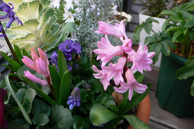 皆様こんにちは今日もまた暖かい一日でしたね今日はお仕事も早めに終わったのでゆっくり帰宅したら・・・息子が早めの下校だったらしく、友達の家にお邪魔していましたこんな日に限ってケータイ忘れて出かけてるし、最悪だわ 気を取り直して、息子を友達の家に迎えに行ってからお庭の様子を見て回りました ママ友にもらったヒヤシンスをパンジー達の間に植えていたらいつの間にか咲いてましたよ~多分低く咲くと思うから・・・と言われた通り、やっぱり低い位置で咲いてます 色も不明でしたが、どうやらピンクと紫のようです すっかり枯れてダメになっていたと思っていたアスチルベに小さな小さな芽を見つけたので一昨日慌てて鉢増ししておいたら・・・たった2日でこれだけ成長していました。ビックリですビックリついでに・・・私、年が明けてから仕事を始めて忙しさにかまけてバラの手入れを殆どしてませんでした。だから今日アブラムシが新芽についているのを見て焦ってテデトールしましたその時にこの蕾に気が付きました。ハーロウカーに小さな蕾を3つ発見です咲かないかもしれないけど・・・チョッピリ嬉しい発見でした 最後に・・・玄関横のラナンキュラスの蕾が大きく膨らんできました。 何色を植えたのか全然覚えてませんが、多分黄色か白かって所でしょうか。後オレンジも芽出しまでは確認してたんですが、それぞれどこに植え付けたのか全然覚えがありませんこの後ろには水仙タリア(多分)が成長してます。 私の記憶なんてこんなものです咲いて初めて気が付く事もあるくらい・・・健忘症なのかしら。 あ、そういえば芍薬も順調に成長しているようです写真撮るのすっかり忘れてましたマイペースでブログ更新してますので・・・いつもこんな感じです