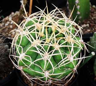 ガマンマのニク・サボ栽培にようこそ ^^8月8日(金)雲一時雨後晴 24~33℃ 湿度湿度53%。9日は曇一時雨33℃、10日は曇後雨24~30℃に。本日は、ギムノ・1本刺怪竜丸とノトカクタス・獅子王丸ほか。にほんブログ村ギムノ・1本刺怪竜丸立強刺タイプギムノ・1本刺怪竜丸昨年実生のキリン接ぎ怪竜丸 だんだん1本刺に移行中、植替えしてやった。怪竜丸 1本刺実生だが小さい時期は3本刺、化けるか怪竜丸 3本立刺タイプ通常は3本刺が肌に添うように出す怪竜丸 昨年実生の強刺タイプノトカクタス・獅子王丸(Notocactus submammulosusvar.pampeanus)獅子王丸 昨年実生の袖ヶ浦接ぎ黄色花個体、赤花種もある。獅子王丸 キリンラップ接ぎ上下2本の中刺が長い。------------------ご覧いただきありがとうございます。よかったらポチお願いします。 にほんブログ村 多肉植物ランキング #多肉植物