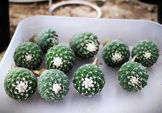 ガマンマのニク・サボ栽培にようこそ ^^8月1日(金)晴、26~37℃、湿度52%。2日も晴れて37℃、3日~5日は38℃に。 本日は、ユーベル・エリオカクトイデスとエリオカクタス属とメロ・マダンザヌス。にほんブログ村ユーベル・エリオカクトイデス自家採取した今年の実生苗。キリン団扇台木に置き接ぎキリン台木は暑い時期ほど成長が良い、今回は4つ実施。エリオカクトイデス(U. pectinifera v. eriocactoides)2024.07.15置き接ぎ苗エリオカクトイデス昨年の置き接ぎ苗。エリオカクタス・ワラシー(Eriocactus warasii)エリオカクタス・金冠(Eriocactus schumannianus)メロ・マダンザヌス2つと青磁色肌のアズレウス(右)メロカクタス・マダンザヌス(Melocactus matanzanus)=朱雲袖台木接ぎをカット乾燥後植え付ける------------------ご覧いただきありがとうございます。よかったらポチお願いします。 にほんブログ村 多肉植物ランキング #多肉植物