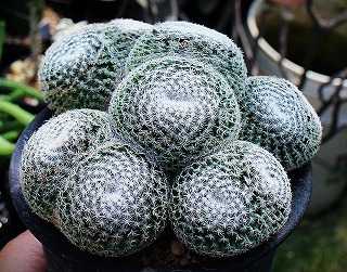 ガマンマのニク・サボ栽培にようこそ ^^8月27日(水)晴、25~35℃、湿度51%。28日は晴れて36℃、29日も36℃の猛暑日 本日は、白刺マミラリアの雪絹丸の分頭で 群生するタイプと子吹群生する白絹丸などにほんブログ村マミラリア・雪絹丸(Mammillaria microthele)分頭して群生していく雪絹丸2頭から4頭に倍々に頭数を増やすマミラリア・白絹丸(Mammillaria lentha)細い尖がった長疣に白刺密生、丸々と扁平に形良く群生白絹丸 花は5~6月頃、花弁は白で花芯はピンクの中輪。マミラリア・クルシゲラ(Mammillaria crucigera)硬い短い刺が密生、分頭と子吹両方で群生する。クルシゲラ 花は濃い赤の極小輪花マミラリア・大福丸(Mammillaria perbella)分頭群生する代表種。マミラリア・玉翁殿(Mammillaria hahniana f. lanata)玉翁の(f=forma)で特別毛長く優美------------------ご覧いただきありがとうございます。よかったらポチお願いします。 にほんブログ村 多肉植物ランキング #多肉植物