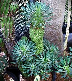 ガマンマのニク・サボ栽培にようこそ ^^8月13日(水)曇時々晴、26~36℃ 湿度60%で蒸し暑い日に、14日は晴て36℃。 本日は、デイデイエレイア・マダガスカルエンシスとユーフォ・コルムナリス他。 にほんブログ村デイデイエレイア・マダガスカルエンシス(Didierea madagascariensis)長いトゲに多肉質の長い葉を付ける。外多肉にしたマダガスカルエンシス冬季落葉する。春毎年同じ場所から葉を出してくる。生長点が故障して枝が2つ出来ている。ユーフォ・コルムナリス(Euphorbia columnaris)ソマリア産ユーフォで寒さに弱い。生長点故障で子吹している。掻き子の挿し苗 幾つも挿したが1年経過して発根したのは1つだけ。コルムナリス 通常接木栽培ラクティア台木接ぎ。ユーフォ・ビスキデルミス(Euphorbia piscidermis)ソマリア産ユーフォで例に漏れず寒さに弱く難物種魚の鱗みたいな表皮の珍貴種。---------------アズテキウム・ヒントニー錦(Aztekium hintonii f. varieg.)斑がハッキリしてきた。------------------ご覧いただきありがとうございます。よかったらポチお願いします。錦 にほんブログ村 多肉植物ランキング #多肉植物