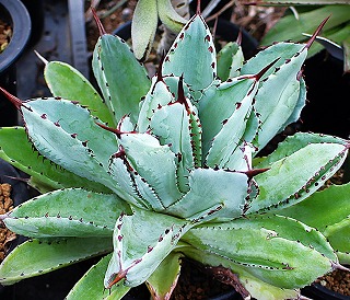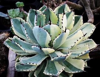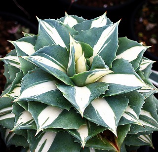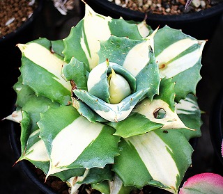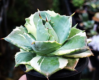 明るい覆輪斑に青白い葉と赤黒の刺の