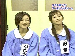 ァオイちゃんとメールばっかりやっててブログを更新しなかったタローです!さて、今日は!昨日で最終回だったハロモニを!では、さっそく梨華ちゃんがオーディションの時の美貴ちゃんを見て普通の顔してますけどきっと内心では照れてるんです!(きっとw)美貴ちゃんは当時、髪が長くてカラコンをしてたみたいです!そんな美貴ちゃんに矢口さんがオーディションの時に保田さんもカラコンをしてたらしくて美貴ちゃんと同じに(笑)でも、梨華ちゃんと辻ちゃんに「一緒にしないで!」って言われてました(笑)そして・・・昨日のハロモニ。でハワイツアーの模様が!んでもって美貴ピンクが!(*´Д`)キャワアアアアアアアア!!!!美貴ちゃんが二つ結び!しかもこのピンクのエプロン(?)みたいなのを脱ぐとへそだしになってるんです!!!!そして、来週から「ハロモニ@」が始まります!ハロモニ@は毎週、自由な娘。達がいろんな街へ出て遊ぶそうです。そしてそして!今日はGAMがHEY×3に出演します!皆さん、7時からなのでお見逃しなく!