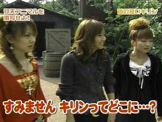 さて!今日もやりますよ~!その前に!なんと!モーニング娘。の「歩いてる」がオリコンのデイリーズランキングを2日続けで1位だそうです!!!!イエイ~☆ さすがです!「歩いてる」いい曲ですからね♪2番目くらいに好きですwww1番は「浪漫」ですwwということでおめでとう~!!で、ハロモニ。やりますねwズーラシアに来た美貴ちゃん達ですが・・・なに?動物の百科事典を作るとかで動物大好きの美貴ちゃんはミキゴローになりたいみたいですwww動物の前だと赤ちゃん言葉になるらしいですよ!聞きたいなぁ、美貴ちゃんの赤ちゃん言葉♪チーム戦らしいですwチームミキティはものっそいかっこいいんですがwwwこれって変顔?キャワッ(*´∀`*)首の長いキリンを激写するというお題が出ました!なんで、そんなにノリノリなんですかね?w美貴ちゃんに続いてはしゃいじゃってるのんつぁんとれいにゃですwはしゃぎすぎてブレてますよのんつぁん!(笑テロップにもあるようにノリノリ3人組ですwww美貴ちゃんだけブレてないとかwwだから、のんつぁんはしゃぎすぎですからwwwはしゃぎすぎですwwwではなく、キリンを探してたらしいんですけどいないとか!リアルに落ちてるんですけどwwwwこの続きは、明日でwww
