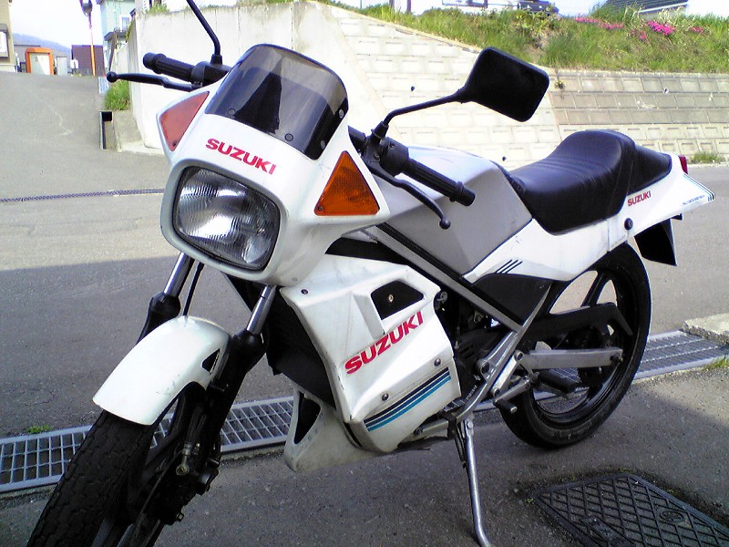 え~ガンマが復活いたします!!とりあえず動画話は長くなるのですが、その事故った当日にバイクやに事故った固体をとりに来てもらってその後相談しにバイク屋によったときでした。おっちゃん 「こりゃ直すのに10万ぐらいかかるよ~。そういえば、今新しくガンマが入りそうなんだよね~」私 「マジっすか!?」おっちゃん 「うん。なんかもう乗らないとか言う人がいて~まだ相談中なんだけどね~それ待ってみるかい?」俺 「是非待たせていただきます!!」という流れで、どうなるか待っていたんですが、一昨日電話がきて、おっちゃん「ガンマ手放すことに決めたって。」 私「マジっすか!?いくらぐらいですか??」、おっちゃん「いくらぐらいなら出せる?」、私「ん~5万前後ですかねぇ~」、おっちゃん「うん、4万5000で譲るって言ってるけど、どうする?」、私「買います!!」買っちゃいました!!しかも、買った固体がいままでのガンマより古い初期型か2型!これはプレミアもんですな~!!とうことで復活!!納車が楽しみです!!