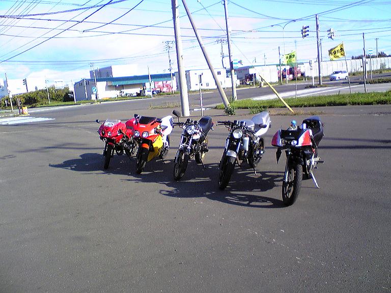 ○港出撃してまいりました!!イェーイ!!やっぱ楽しい!うん!でも寒いTTでも~~楽しい!!夜9時バイト終わって、この間の燃料漏れの原因のタンクの穴修理!!適当にペーパーかけて液体ガスケット塗ってパテ埋めして終了!!まぁ気にしない気にしない!!そしていつもの高○くん(FZR)の連絡を待つ!そして電話~具合悪くていけないって!どんだけぇ~まぁ一人で行きますよ。最初は俺一人で行ってたんですから!で、着替えて出発~ん!?なんか吹けないな~まっそのうち直るべと思いながら○港までの道のりを一人ひた走るのであった。○港到着~まず電話~いつもの先輩へ!コンビニいるそうな。突撃~いた!いつものように。そしていつものように公道回場へ!まぁみんなで走りますよ!いろいろあったけど、書くの結構めんどいんで省略~先輩に詳細は任せるとしよう!うん。朝方もう7時!残ったメンバーで撮影会↓天気最高~~その後解散!すっごく眠かったのでアグレッシブに攻めながら帰宅&爆睡~夜6時まで寝てましたTTF1見れなかった泣