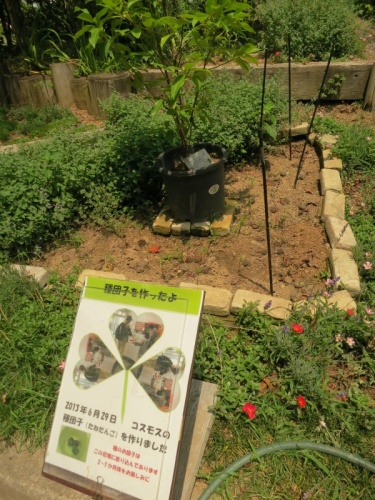 コスモスの種団子が芽生えていました花壇に放り込んだのは6月の30日です♪