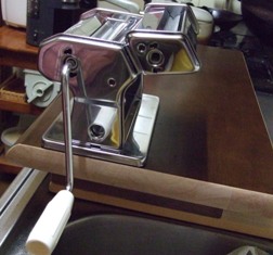 前から欲しかったパスタマシーン(ATL-150)、買っちゃいました~一緒にうどん用の替え刃と、ギョーザの皮用にφ8のセルクルも購入したので、これからいろいろ楽しめそうですマシーンを固定するための台は、夫の手作りです。ハンドルが本体より長いので、端っこで使うしかないのですが、固定しないとシンドイかもしれません。