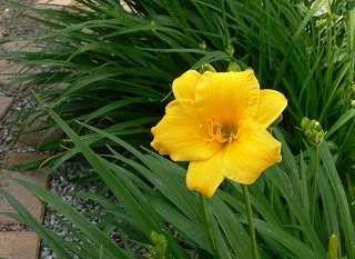 今朝、一つだけヘメロカリス(ミニ)が。。この花がパッと開くと、何だか明るい気分になります。花の力って、すごいなぁ~~。