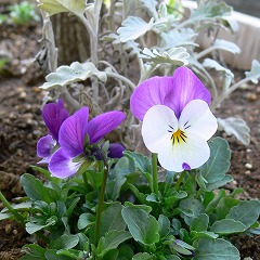 むかしむかし私がまだ子供だった頃、野に咲くスミレの花を家に持ち帰り、庭に植えようとしたことがありました。何度やっても、上手くいかなかったっけ。。。去年のこぼれ種から花を咲かせたビオラを見ながらふと、そんなことを思い出してしまいました。それにしても、勝手に交配して勝手に根付くビオラ達みんな違う顔をしてますねぇ~~~。