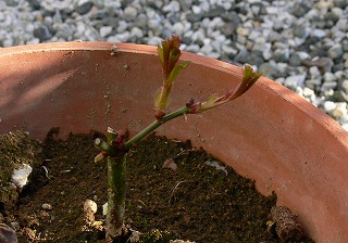 本当は、2月中にしておかなければならない作業だったと思いますが、、遅ればせながら剪定しました。ついでに、肥料も・・。これは、去年挿し木したものです。結局、成功したのは2つだけ。。何とか芽を出してくれました。