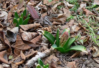 花が終わった後、球根を掘り出のは中々面倒なので、ついつい植えっぱなしにしてしまうのですが、、、ヒヤシンスはほうっておいても、ごらんのとおりエライなぁ~~。 着実に子孫も増やしてる。。ムスカリも、とんでもない所で蕾をつけていました。球根が小さいから、何かと一緒に移動してしまったのね。。