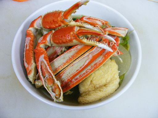 お休みだーい!でも三時頃に娘が迎えに来るのでゆっくり寝ていられない・・・友達のカメラマンが還暦なんですよ其のお祝いを一緒に買いに行こうと言うことで街で落ち合おうと言ったら迎えに来る ダウ(だって)急に毎日の習慣が変わるはずも無く只今 酔い度4 てへっ困った酔いどれお父ちゃんでありますうー早く寝なくては!・お客さんが越前に行って来たとかでお土産に蟹を持って来て呉れまして急遽 蟹鍋が賄いに・・・今シーズン初物だー!うん? これロシアの冷凍じゃん自分用はしっかり生だったのに!(店で蟹すきにして出しました)文句言えた義理では無いですけど取り敢えず一人一杯有ったのでまーいっか!実は捌くのと 食べるのに夢中で写真撮るの忘れてまして何時も最後になる若い衆のを慌てて盛り付けて撮りましただから余り良い部分が無いのね(良い所から食べちゃいました 料理人の特権)若い衆 ご免よー! 本当は思って無い・・勿論蟹味噌もたっぷり頂いてしまいまして残骸すら残っていない此れもNO。1のご機嫌取りたいが為のお客さんの努力?のお陰でお零れに預かった訳でと言ってもキッチンからは客席見えない為にどの人に頂いたのかどんな顔しているかも判りませんが女の子の気を引くのは大変だわねー!それでもスタッフにまで蟹を呉れるなんていよ!太っ腹!其の他に 甘エビ と 生雲丹 なんかが入ってましたが他のお客さんに出してしまいました生雲丹なんてプリン体の塊みたいなもの危なくってそれで無くっても蟹も充分危ないのに其れと甘海老は釣りの餌思い出してしまって食べる気に為りません(贅沢者と怒られそう?)締めは蟹雑炊しっかり作って此れも完食致しました休みは暇だから材料用意して有ったのですが此れは明後日用だわねーげっ 9時だー!寝なくっちゃ!!!