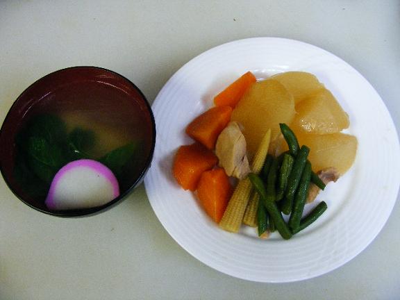 サワッディー ピー マイ クラップ(新年明けまして おめでとう御座います)仕事帰りに初詣済ませて参りました・大晦日はそんなに忙しくないだろうと・・・・・・・・なかなかゆったりしたオープニングだったのですこりゃ今年は駄目なのかも!なんて話していたのですが思惑あっさり破られて10時過ぎた頃から来客続々!!!!どないなってまんねんな~!其の前に年越しソバ食べておいて良かった~!P達 ラシーン(酔っ払い)続出ニューイヤー カウントで大盛り上がりしてハッピーニューイヤー連呼!!そしてハグの嵐しっかりタイ娘全員ともハグしましたがタイ娘にはハグの習慣無いみたいで結構照れていて可愛かったので有りますドサクサに抱きつくただのスケベ小父さんじゃ無いですよ?それにしてもPはお前ら香水きついから抱きつくな~!Tシャツにしっかり臭い付いちゃってくっせ~!!新年そうそう文句言っておりますが!帰る早々 着替えして風呂をわかして居りますでも 部屋まで臭いの~くっすん早くお風呂沸いてください! お願い!・早いうちに年越しソバをしっかり一人前それも十割ソバの美味しいバージョンだったので腹が減りません怒涛のオーダーで作っている暇も無いのですが珍しくPのスタッフが年越しソバをジャパニーズカスタム(習慣)だと紹介したら雑煮は無いのかと聞くのでそれは新年のものだと言ったのですが年明けして新年なんだわね~じゃ 一丁 地元の名古屋雑煮してみるかってことで「煮しめと雑煮」然し餅が杵で搗いたものじゃないので吸い地が濁ってしまうのは困り者ですねちゃんと焼いて入れたんですよ!餅菜(正月だけ小松菜はこの名で呼ばれます)と蒲鉾だけのシンプル雑煮本当はこの上に削り節載せるのですがそこまでして写真撮っている暇は有りませんで・・・・・皆さんの地方はどんな雑煮なんでしょう?因みに 出汁は焼いた鯊を干したものでとります九州ならあご(飛び魚の焼き干し)でしょうか?