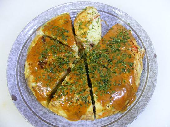 昨日火事の報告したのに今日は営業中に向かいのビルの二階が小火(ぼや)出して消防車10台以上終結しての大騒ぎPレストランですが片付けなんて絶対遣らないPが揚げ物していてフライパンの火つけっぱなしなんてのはしょっちゅうなんだそうで良く小火を出すそうです其の伝で 遣っちまったみたい・・・・・・二日れんちゃんなんて縁起でもない!二度有る事は三度ってか~?・店は相変わらず暇で有りますま そんな事は去年から判りきっていたのにスタッフ3人も増えて経費増やしてなんとする!しかもそれにまして今度またチーフ一人増えるダウ一寸待てチーフって私じゃなかったのかい?なしてキッチン増やすのかな・・・・・・・・訳が判りませぬ昨日てんぷらだったって事は毎度御馴染みのお好み焼き今回は大和芋ではなく伊勢芋と長芋のミックスで生地を作ってみました出汁は昨日の饂飩出汁是が結構正解で味とってもよろし!厚みは今回5センチ近くとても食べ切れなくて半分持って帰ってしまいましたが只今美味しく頂いております冷めても美味しいです!