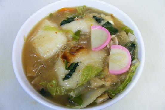 昨日は何故だか書くの忘れて・・・・・単に酔っ払って寝ちゃったんですけど・・・このところ帰り着くや否や飲んでしまって8時間以上寝てしまうパターンが続いて!今頃になって疲れが出てきたのでしょうか?反応遅すぎ!もう一ヶ月近く時間が過ぎてしまったのね・・・・・はー!!まそれには触れないことにして又もやこんなものを見つけてきて悦に入っている私餃子は次回に廻して(105円)野菜一杯で餡掛けに・・・・何処に魚が有るか判りませんが2日から始めて昨日8日で総額2867円の材料費が掛かっておりますが割ると333円の割る2人でまあまあの(166円)金額では無いでしょうか?勿論野菜はストック充分だし餃子は未だ使ってませんし!自画自賛?!で本日(もう昨日)是を何にしようか勘考!(名古屋弁です)行き着いた答えが野菜たっぷりポークステーキパスタじっくり焼いてウイスキーでフランベしたポークステーキにオリーブオイルにニンニク利かせてトマトスライスと野菜炒めてプリックポン(タイ粉唐辛子)少しだけ入れて白ワインで少し煎り付けて茹で立てパスタを投入美味しいのだけれど少量でもタイの唐辛子は強烈!!!!!汗が・・・・・・・それとPのアルバイトの子から貰った車えびで是でもかという海老だけのトムヤムクン!海老が甘~い!あっと言う間に10本食べちゃいました海老も痛風にはご法度なんですが・・・・・・是でも貧乏賄い?値段的にはね!?・・・・材料的には贅沢賄いの気分でした