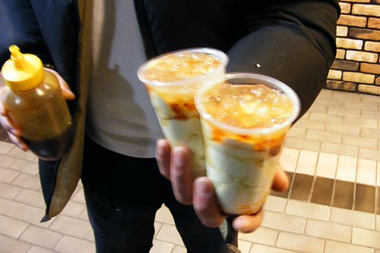 きょうは 日本の食材が外国に行くと如何変わるかと言う良い見本みたいなものがPに有るので・・・・・・・少しピン惚けですが豆腐の熱いものにナタデココを足して カラメルシロップをかけたスイーツ!日本人だったら出てこない発想だわ!!名前は 「タホー」!!!!!トフーが現地でなまった?こんな振り分け荷物で売られてます右側が豆腐の入れ物結構熱いのです!左にはナタデココとシロップ 勿論入れ物とスプーンがこんな調子で売られているのですけれど!色々変わった食べ物がココでは売られて居るので後二日で一生懸命アップしてみましょうかね?当たり前に有るのですが良く考えたら普通日本人は知らない事だらけかも?カバブのサンドウイッチとかタイ料理のテイクアウトとか勿論P料理は普通に持ち帰り仕様で売られて居るので特別なものとは思いませんでしたので・・・・・出来るだけ少ない時間でアップしてみたいと思います尤も全て500円が当たり前なので高いだろう!ってのが正直な気持なのですが旨くも無いP料理だし!!!!