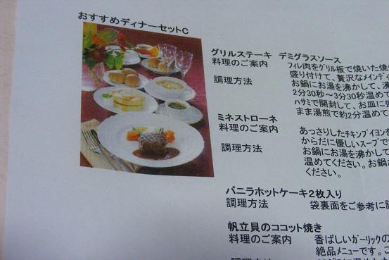 えーと 皆さんから煽られて探す前に パラ様からメールで関空からなら未だ格安航空券若干あるようですよ?!ダウ!URLクリックさせていただいたら・・・・・・有るんですけど!・・・・ねプータローが遊んでいていいものなんででしょうかね?・それとコカコーラパークにしつこく応募し続けて7ヶ月めにして始めて当たりました!高級ホテルのディナーセット4人分!!!!届きまして早速写真を・・・・写真なんて何日ぶりだろう?RIHGA ROYAL HOTELおすすめ ディナーセット Cダウ写真見るとめっちゃ高級そうやん!でも送られてきたものは一人前がこんな感じです内訳はフィレ肉のグリルステーキ デミグラスソースミネストローネスープ帆立貝のココットホットケーキ?バケットで家にある食器で適当に盛り付けたらこんな按配に・・・・・・・・・元嫁 良い食器全部持って行ったな!肝心の御味のほうはもしホテルで是を出されたらお客さん 二度と来ないと思う!一体幾らのセットなんだろう?ただだから文句言うなって?う~ん やっぱ文句言うんじゃないかな!だって是を人にあげることはよう しません・・・・・・・・・おまけでカメラの中に残っていた写真元旦の雪景色!?それと暮の煮物の残りで作った卵焼き 多分16人前位有った筈でも何時作ったのかはもう忘却の彼方