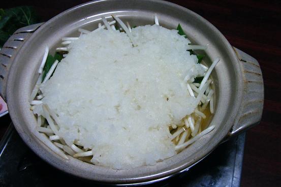 冬と言えば鍋料理ですが・・・・一人暮らしには程遠いものでして!何しろ食材が多種に及ぶし残る事必至・・・・と言う事でここ7年程自宅では作ってませんでしたでもね一念発起霙(みぞれ)鍋が食べたくなって材料買ってきました材料はモヤシ(髭根と芽は丁寧に取り除いて)小松菜(2株)長ネギ(1本)青い部分は全て入れちゃいました白菜(2枚)榎(1/2株)大根半分すりおろして豚ばらスライス2人前位有る?でもね蒲鉾は失敗しましたこれ不味い久し振りに不味い蒲鉾に当たった・・・・!味付けはね~鰹出汁に醤油と焼酎入れてナンプラー!なにしろロッディーがないもんで・・・・・・一味足らなかったんですが美味しく鱈腹野菜食べました!でもね残った大量の野菜どうしよう?・・・・・・・だから一人暮らしで自炊ためらうんですけど・・・・・・・白菜なんて半割り100円で買ったけれどたった2枚使っただけでは残りは・・・・・・・って一部使っただけだからは~!